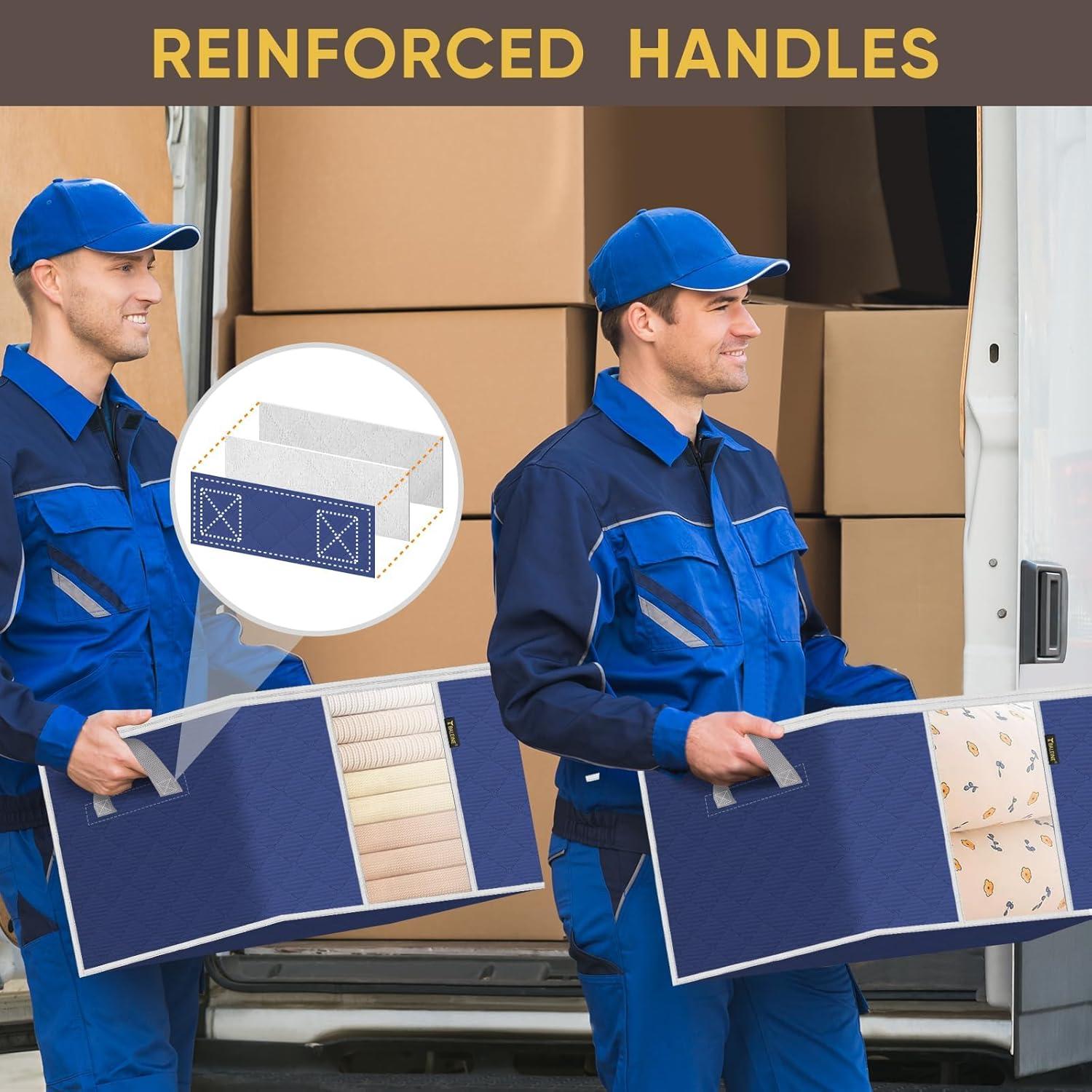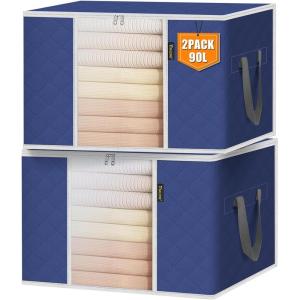 BALEINE 2 Pack Clothes Storage Bags, 24 Gallon Storage Containers with Reinforced Handle, Sturdy Zipper, Closet Organizer for Blanket, Comforter, Pillow, Bedding (Grey, 2 Pack)(Blue)