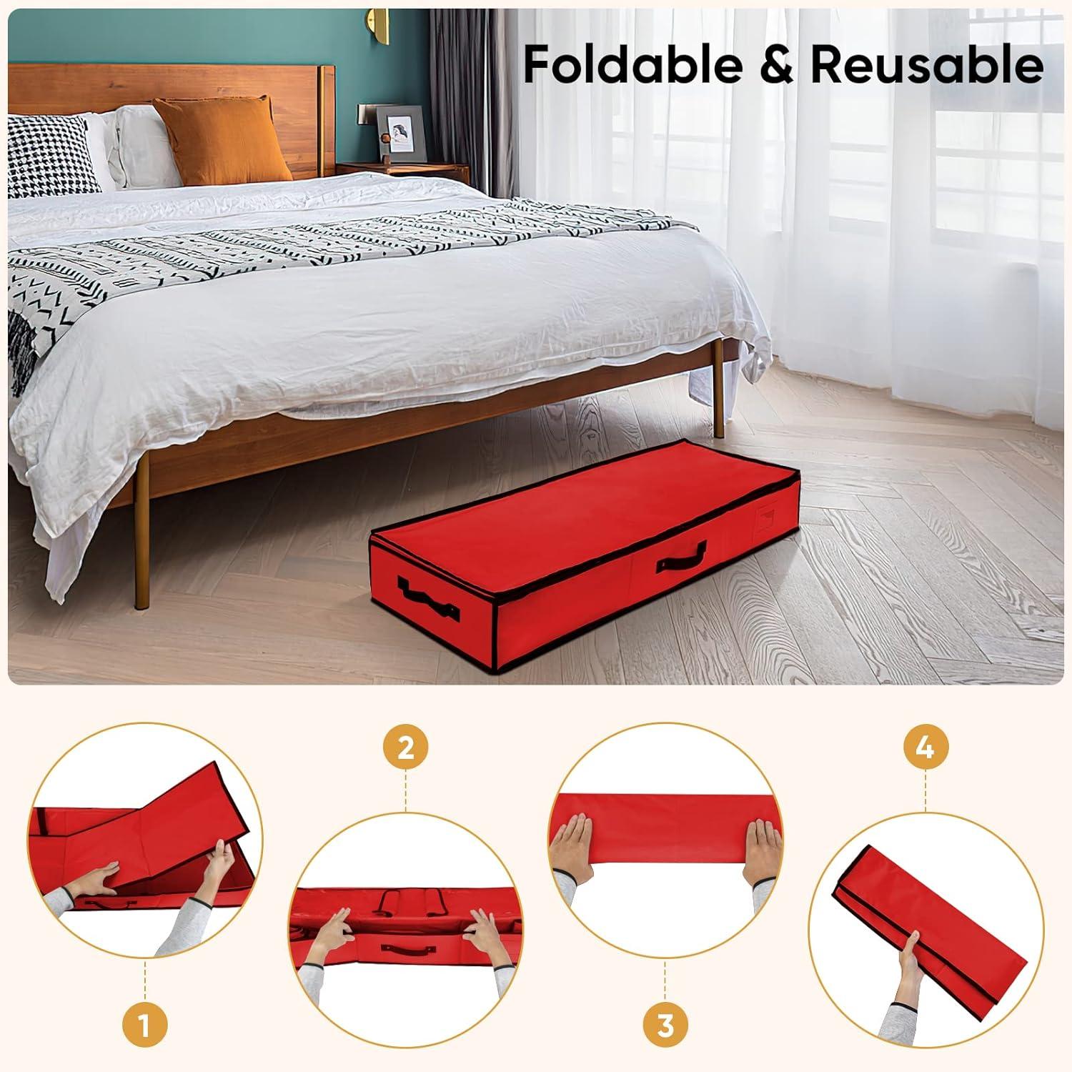 🌲 [PERFECTLY SIZED & VERSATILE] The wrapping paper storage containers are built with craftsmanship and the ultimate storage solution for various gift wrapping supplies. All-in-one storage container that is generously sized for extra wide rolls and smartly partitioned for small gadgets. The size of the gift wrap organizer is 14''x40''x6''